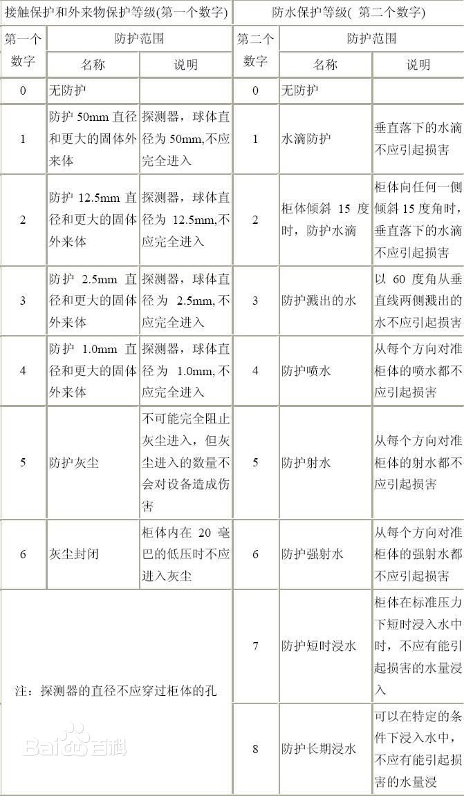 (1)防固體能力的第5級(jí)稱為 “防塵”,但在不會(huì)對(duì)電機(jī)運(yùn)行造成影響的前提下,允許少量的塵埃進(jìn)入電機(jī)內(nèi)部。