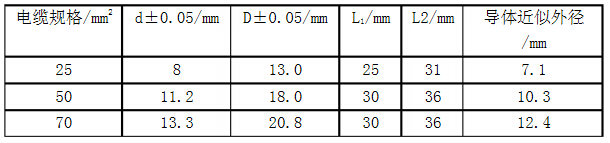 1.具體方桉采用壓接方式將接線螺栓與電纜連接起來,首先要解決的問題有:黃銅H62壓接易斷裂;黃銅H62導(dǎo)電性比紫銅差,需增大壓接面積及導(dǎo)電面積;黃銅壁厚,壓接力大。根據(jù)這些難點設(shè)計合理的壓接結(jié)構(gòu),制作試件進行壓接試驗。各項試驗參數(shù)均應(yīng)穩(wěn)定控制在標準范圍內(nèi):