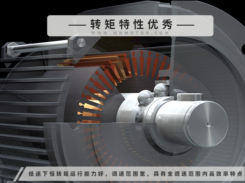 特點(diǎn):具有外形美觀、低噪聲、低振動(dòng)、低溫升、低速下恒轉(zhuǎn)矩運(yùn)行能力好,調(diào)速范圍寬,全調(diào)速范圍內(nèi)超高效率等特點(diǎn),配合WN90T系列變頻器,可滿足多種工況下穩(wěn)定運(yùn)行。