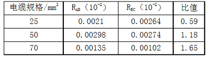 根據(jù)標準需檢測A、B和B、C間電阻(分別為如、R彤),端頭壓接部位的電阻與所連接同長度導(dǎo)線電阻的比值為:(2RAB一RBC)/RBC,壓接電阻檢測結(jié)果如圖所示。