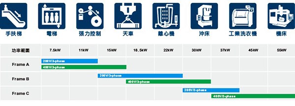 大慣量負(fù)載:離心機(jī)、工業(yè)洗衣機(jī)、粉碎機(jī)、龍門(mén)型工具機(jī)…等