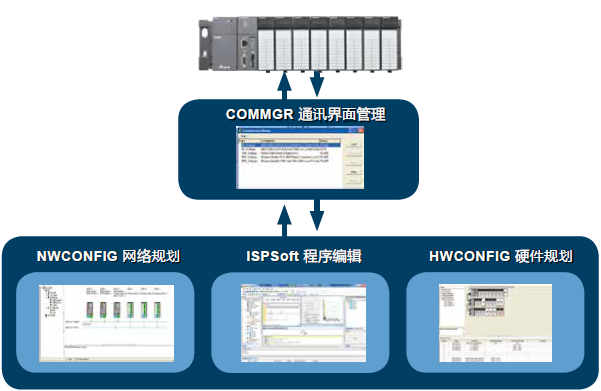 整合運動控制編輯:ISPSoft V3將邏輯編程與運動編程整合在同一套軟件上,并提供符合國際標(biāo)準(zhǔn)規(guī)格 PLCopen? 的功能塊以及臺達(dá)提供的豐富功能塊